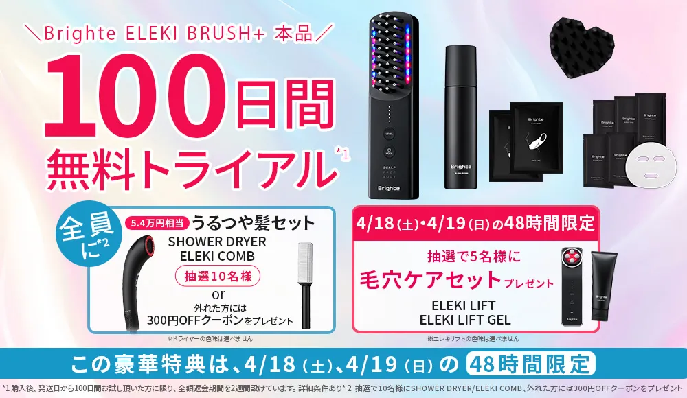 気は水に濡れることで通電するため、お風呂あがりなど濡れた状態の頭皮にエレキブラシを当ててください。