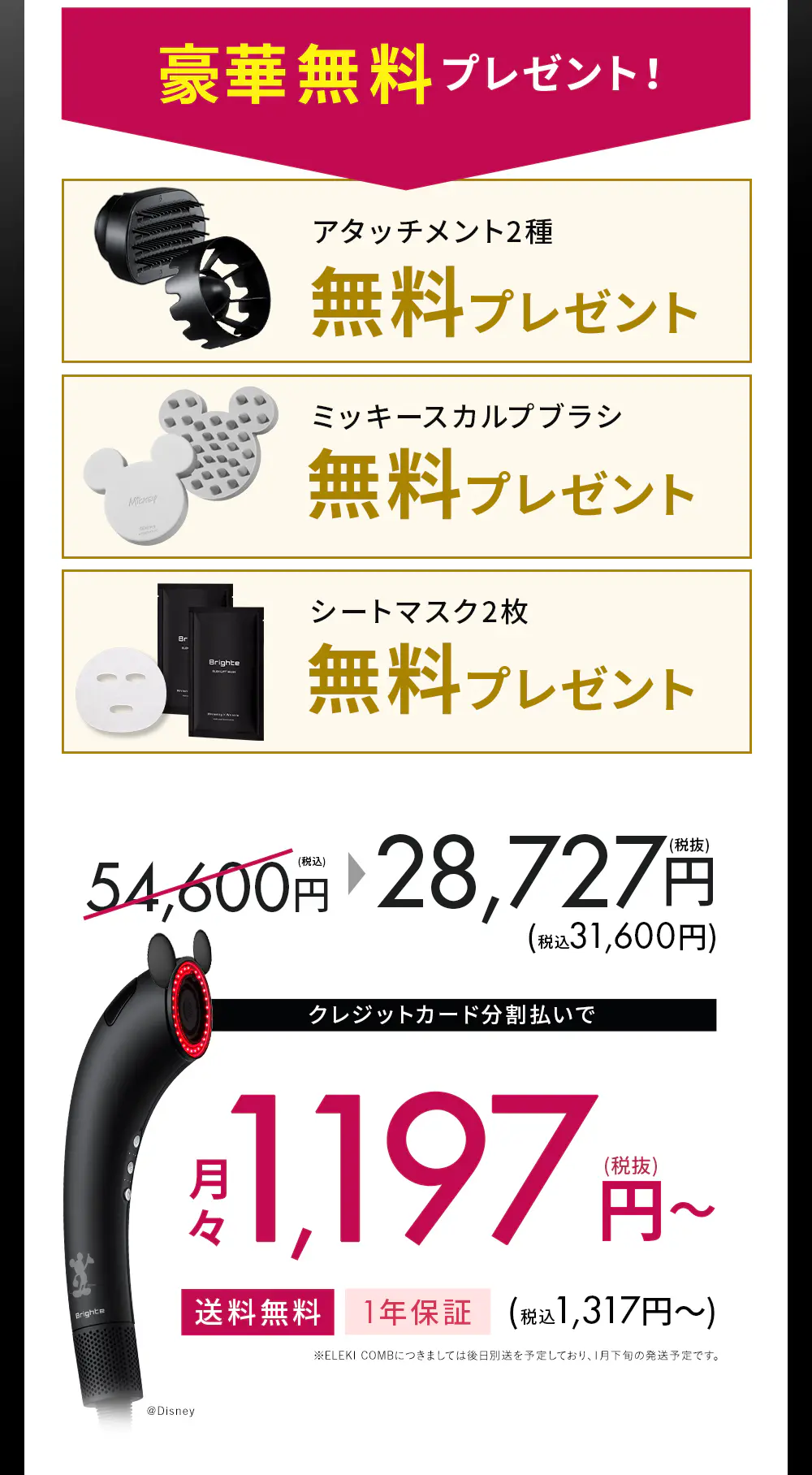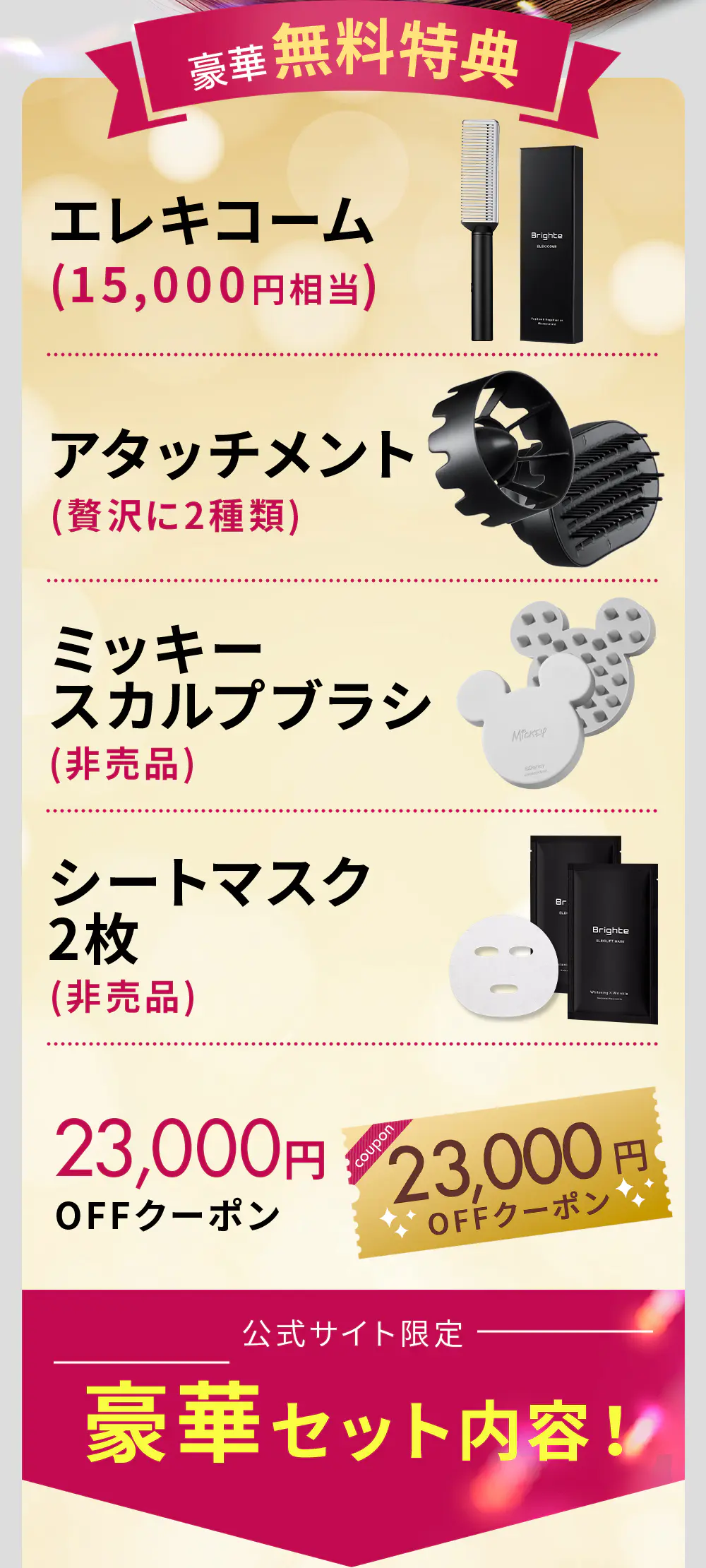 | 付属品 | アタッチメント2種、カートリッジ、取扱説明書(保証書付) |