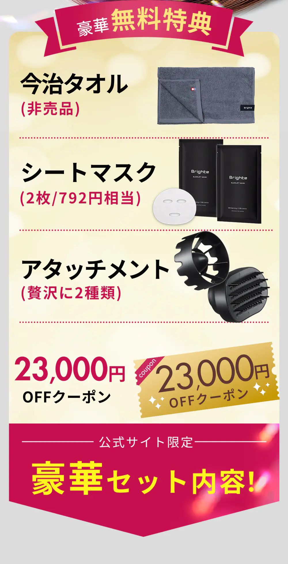 | 付属品 | アタッチメント2種、カートリッジ、取扱説明書(保証書付) |